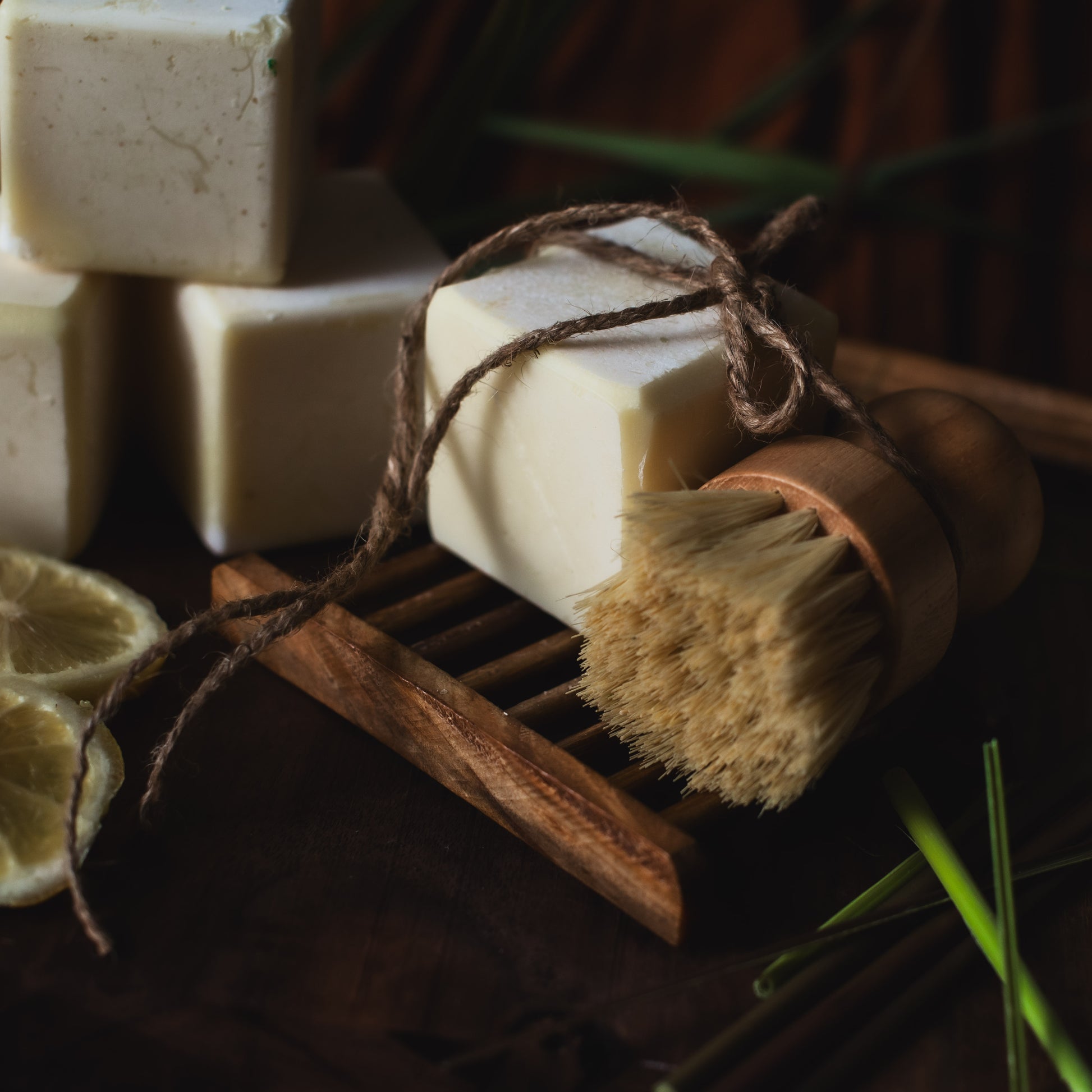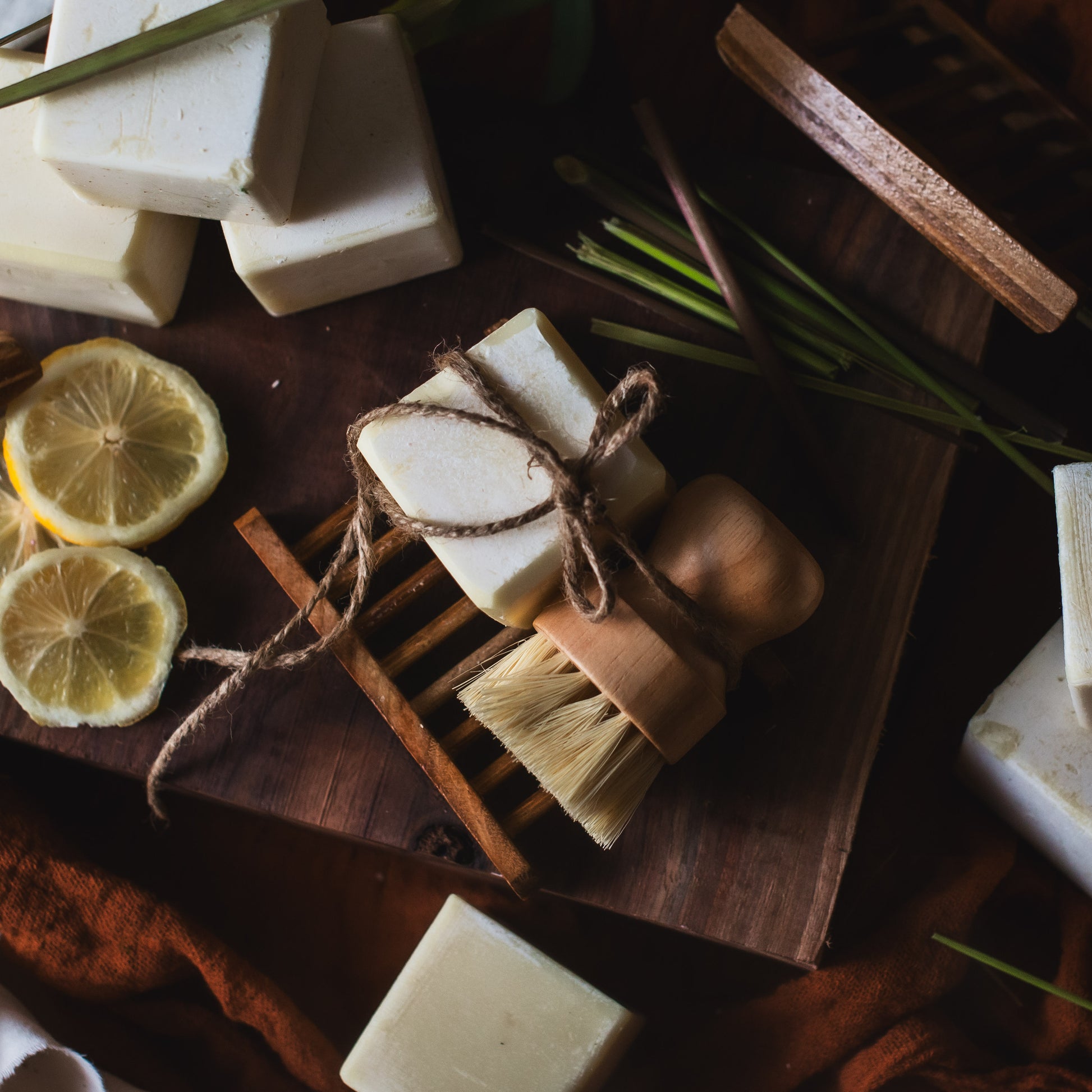 The Dish Soap Set- Artisan Crafted Dish Soap Block W/Bamboo Tray & Palm Brush